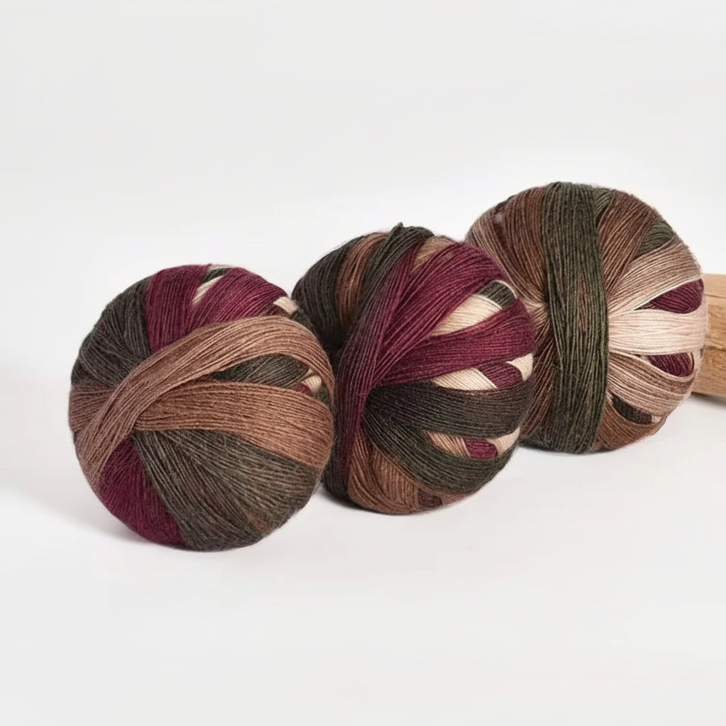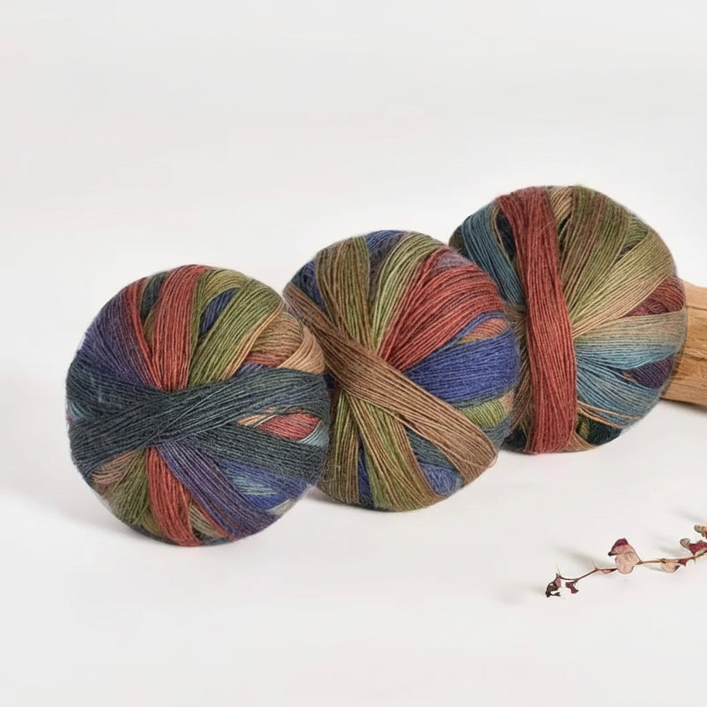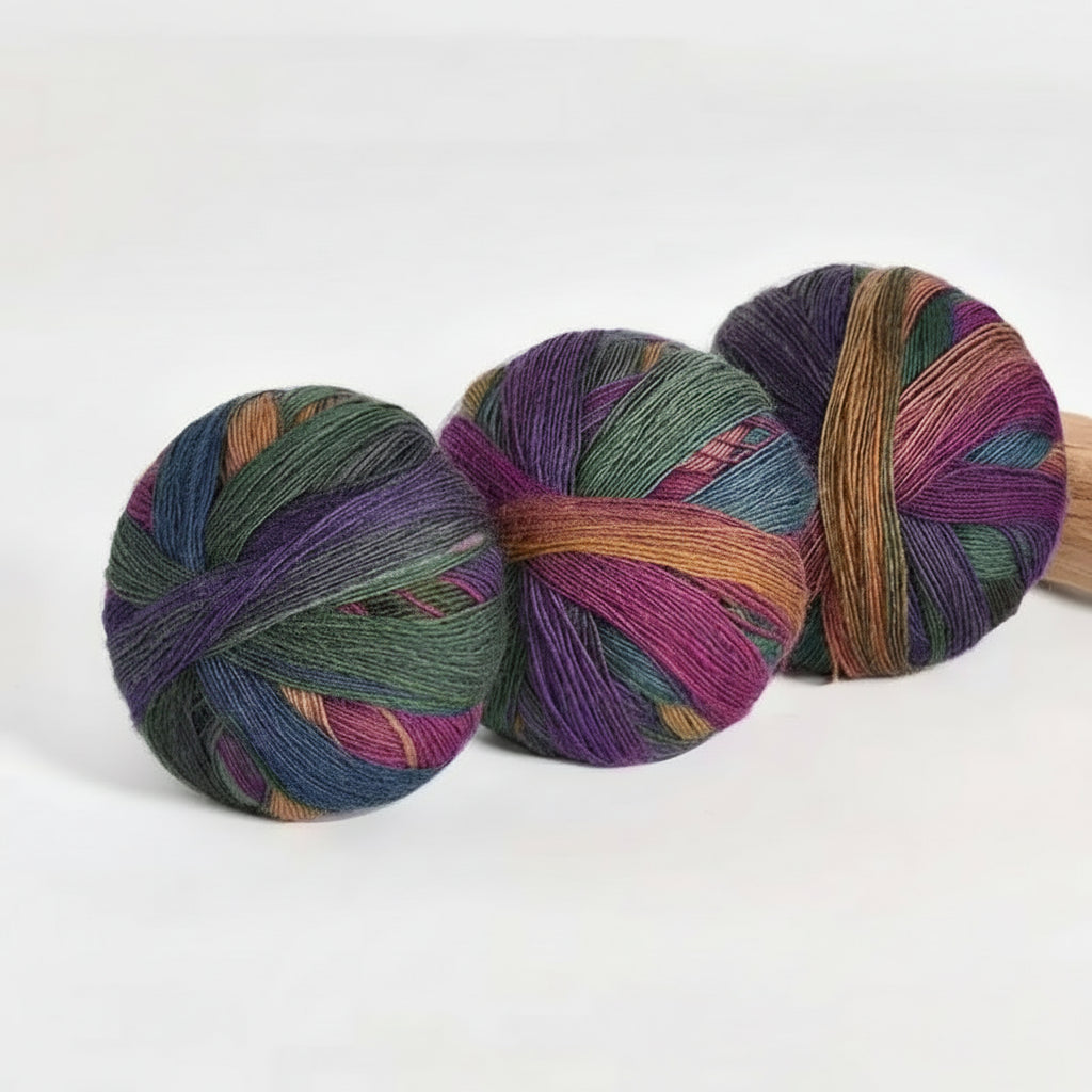 The wool content provides warmth, breathability, and elasticity, while the acrylic adds strength and stability. This blend makes the yarn suitable for everyday wearables that need to keep their shape and colour over time. The gradient dyeing creates visual interest without the need for colour changes or joins, allowing the yarn to do the design work for you.