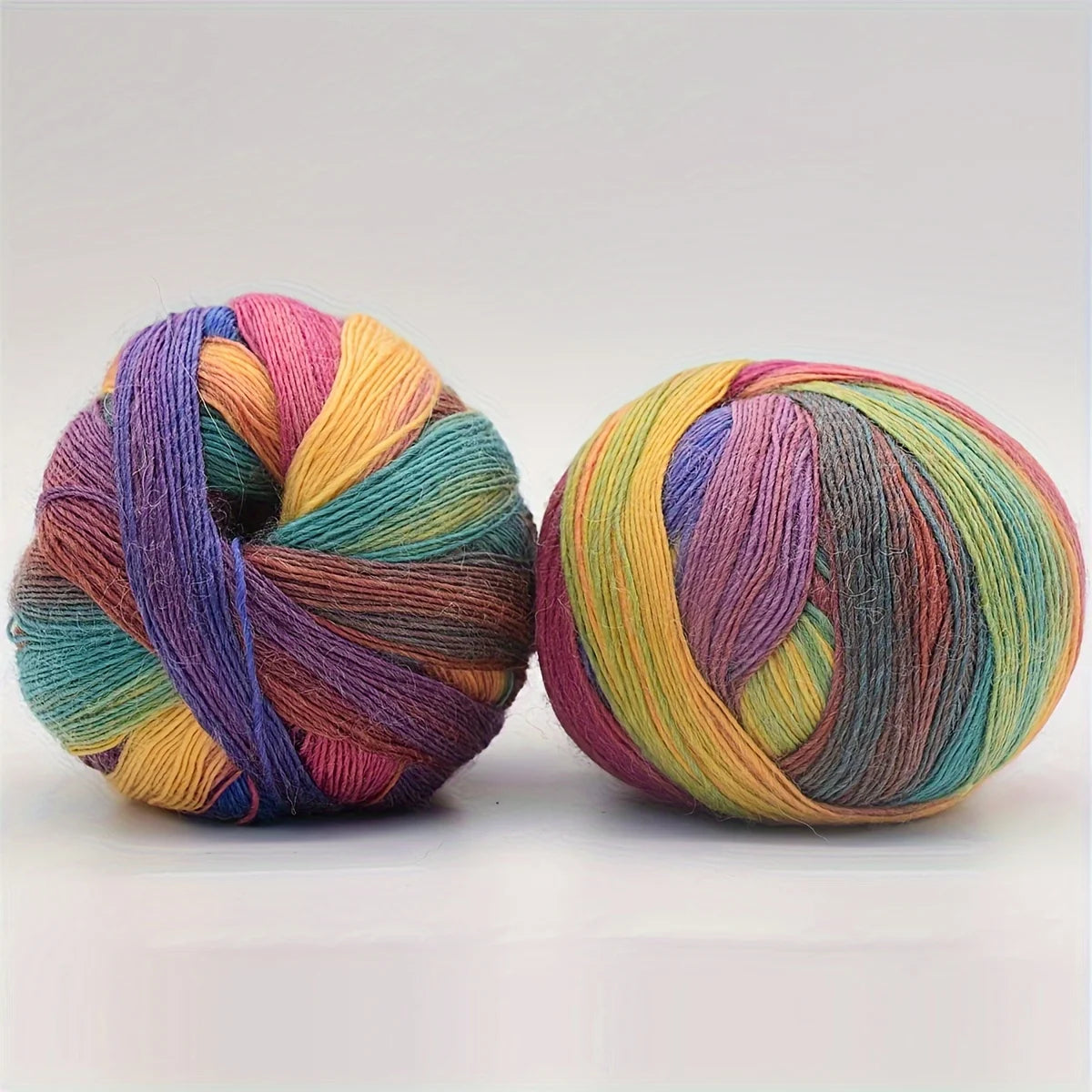 This rainbow gradient wool blend yarn is a soft, warm, and visually striking choice for knitting and crochet projects that call for colour movement and texture. The set includes two matching skeins, creating smooth colour transitions across larger projects without abrupt breaks.