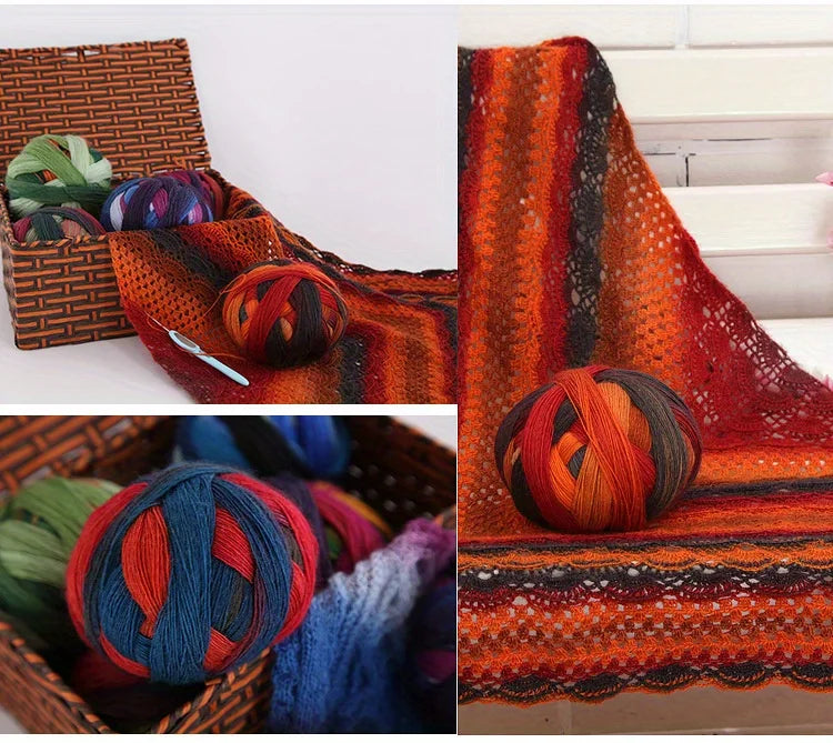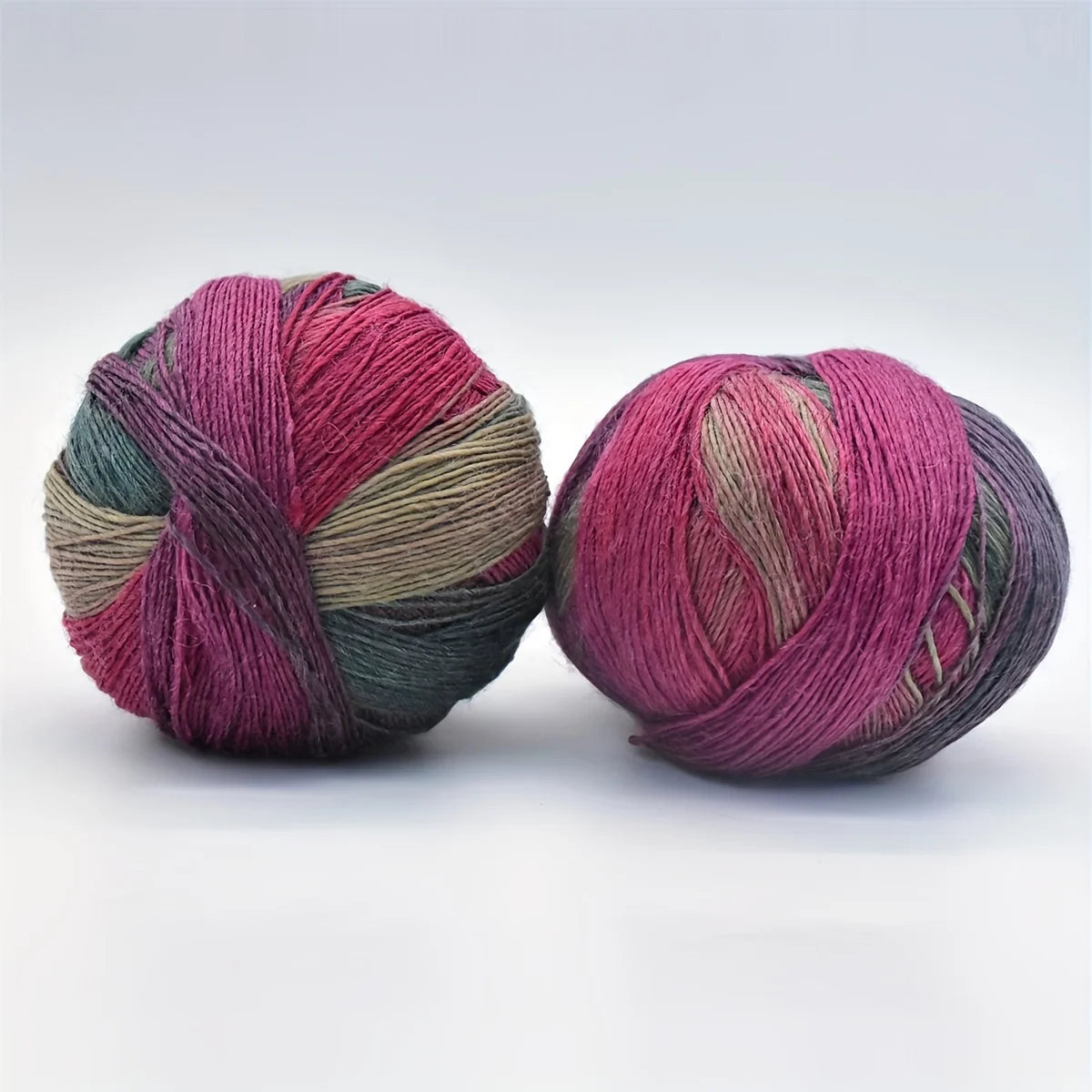 Each skein weighs 100 g and contains approximately 500 meters or 547 yards of yarn. The long gradient colour changes make this yarn especially suitable for shawls, scarves, wraps, garments, and statement accessories where colour flow is part of the design.