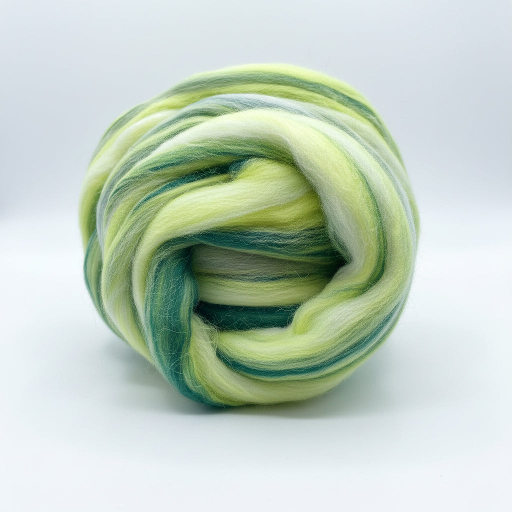 Discover the ultimate in softness and lush vibrancy with our premium 20.5 micron merino wool roving in the enchanting Jam in the Jungle blend, a wild, immersive mix of deep emerald greens, fresh lime pops, rich forest tones, and subtle mossy accents. Specially pre-dyed in rich, harmonious jungle shades, from vibrant lime and bright chartreuse to deep emerald, verdant forest green, and earthy moss undertones, this superfine fiber brings lush depth, natural layering, and exotic movement to every project.