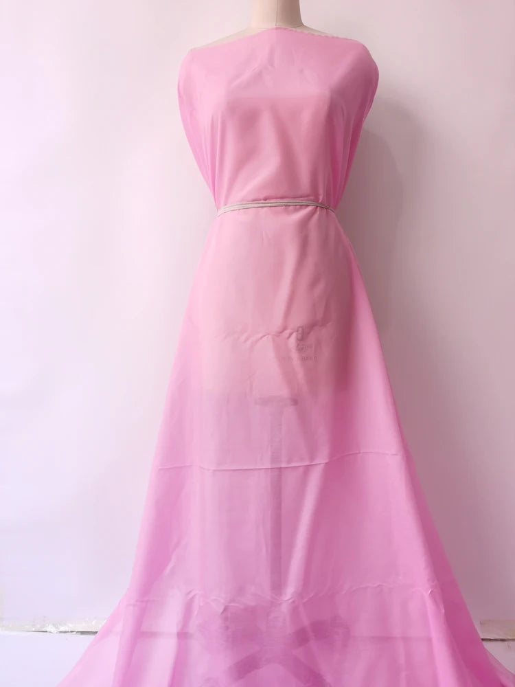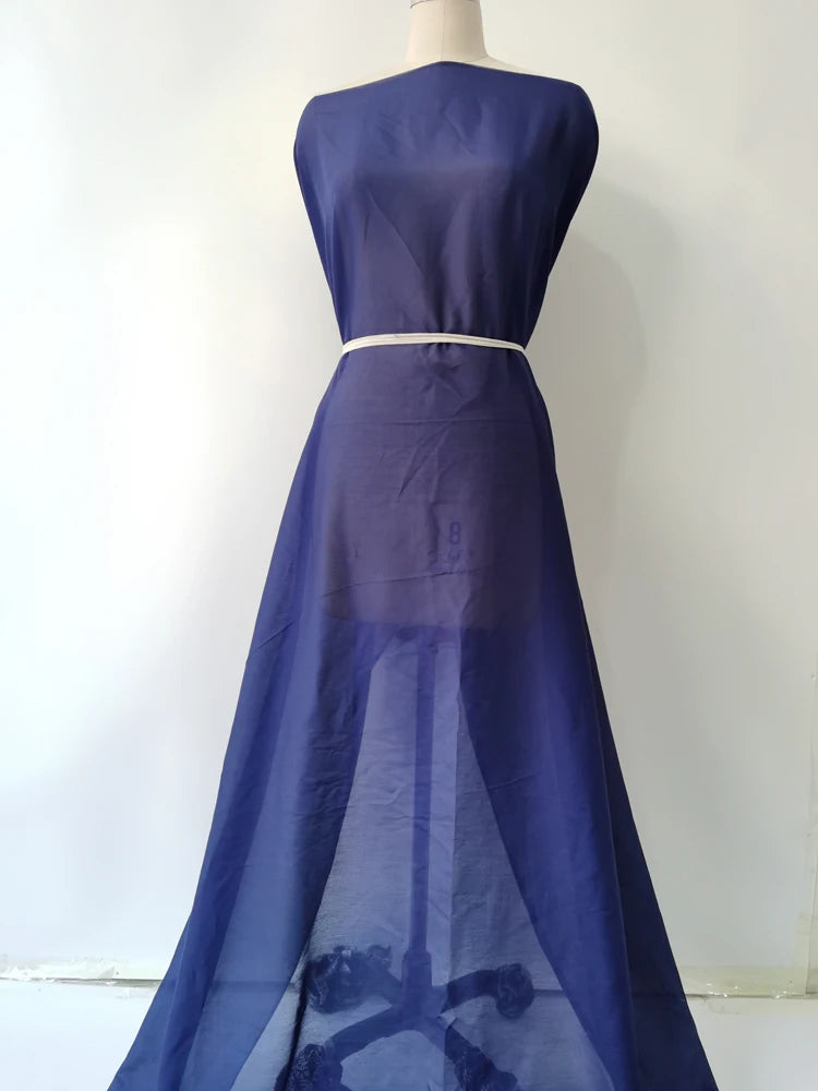 This silk cotton chiffon fabric is suitable for dresses, gowns, linings, scarves, delicate tops, bridal wear, handicrafts, and other sewing projects where lightness and elegance are desired. Its soft transparency makes it ideal for overlays and flowing silhouettes.