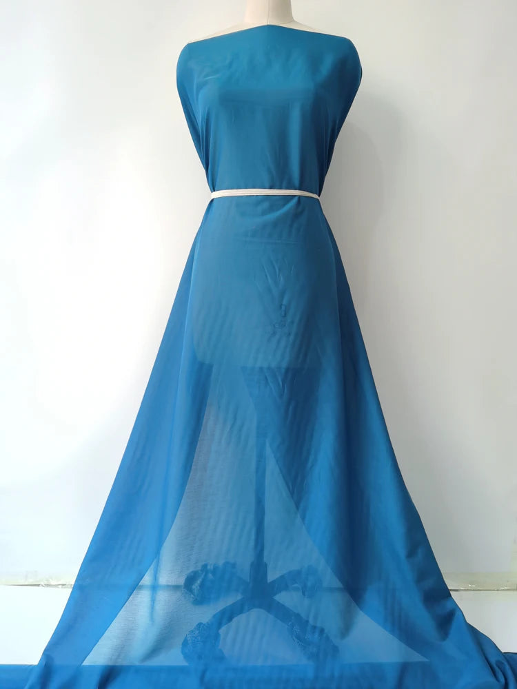 The lightweight chiffon weave allows air circulation and fluid movement, making this fabric especially suitable for warm weather garments and layered designs.